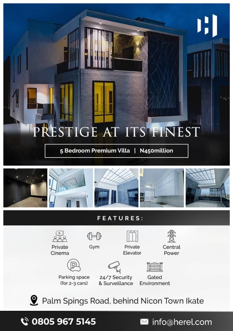 There are still a few units available out of our ten 5-bedroom deluxe villas located at Palm Springs Road, behind Nicon Town, Ikate and this is your cue to get in before they’re all sold out.